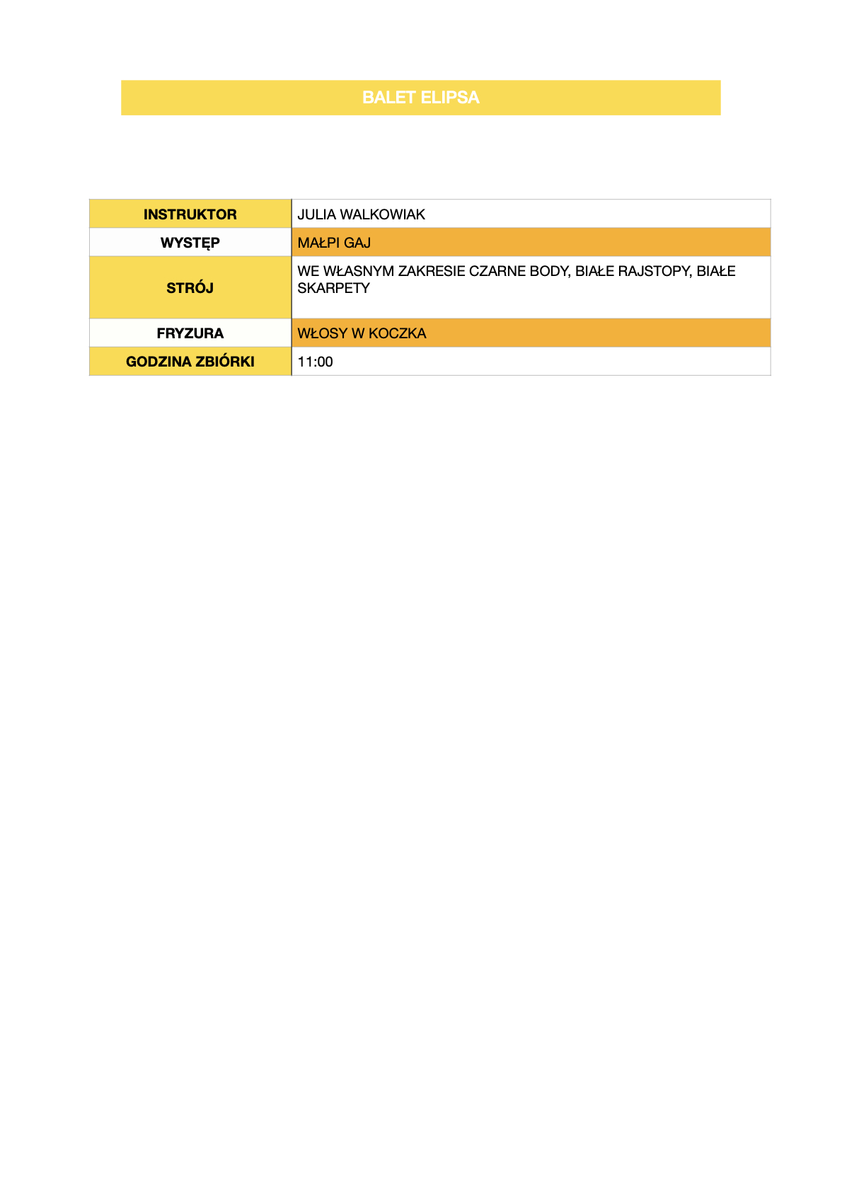 Poniżej znajdą Państwo harmonogram wydarzenia, oraz wytyczne co do ubioru, fryzur, makijażu i GODZIN ZBIÓRKI. Prosimy aby dzieci przyjechały na miejsce już uczesane oraz pomalowane. Na wszelki wypadek prosimy o zabranie szczotki do włosów, wsuwek oraz lakieru do włosów.
